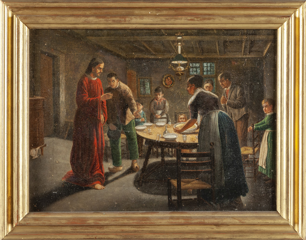 Precedente Lotto 1044 Successivo Aste Boetto - Via Mura dello Zerbino 10R, 16122 Genova Asta di Antiquariato Asta di Antiquariato giovedì 16 dicembre 2021 ore 10:30 (UTC +01:00) DIPINTO 'La benedizione prima della cena' olio sec.XIX