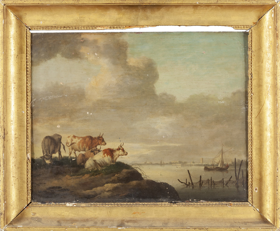 Precedente Lotto 1052 Successivo Aste Boetto - Via Mura dello Zerbino 10R, 16122 Genova Asta di Antiquariato Asta di Antiquariato giovedì 16 dicembre 2021 ore 10:30 (UTC +01:00) DIPINTO Scuola olandese sec.XVIII 'Paesaggio con mucche' olio su tavolacm. 42x55