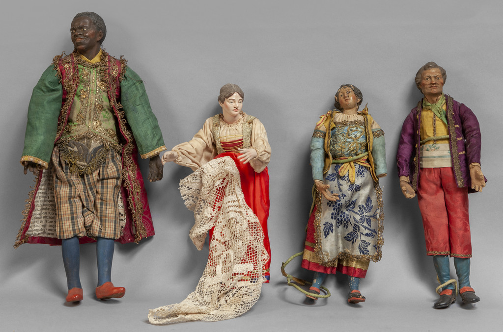 Quattro sculture da presepe teste e mani in terracotta Napoli sec. XVIII (difetti)