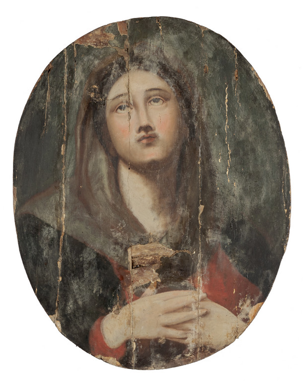 'Santa in estasi' olio su tavola d forma ovale palchettata sec.XVII (cattivo stato)