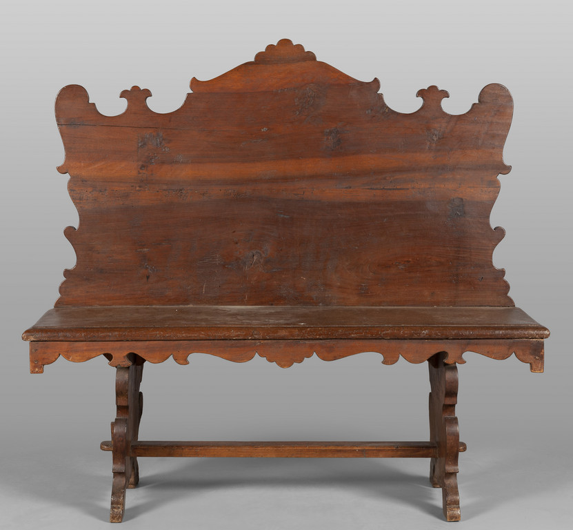 Panca da ingresso in noce con schienale gambe ad asso di coppe (elementi antichi)
