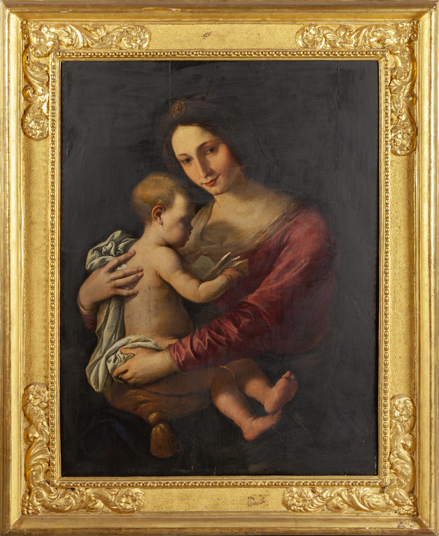 'Madonna con Bambino' olio su tavola sec.XX bella cornice antica in legno intagliato e dorato