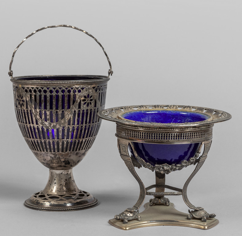 Piccolo cestino portafiori in argento Inghilterra sec.XIX e zuccheriera in argento con piedini a forma di tartaruga (gr.tot.400)