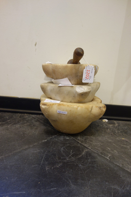 Precedente Lotto 1202 Successivo Aste Boetto - Via Mura dello Zerbino 10R, 16122 Genova Asta di Antiquariato Asta di Antiquariato giovedì 16 dicembre 2021 ore 10:30 (UTC +01:00) OGGETTISTICA Due mortai in marmo e uno in alabastro con un pestello Genova sec.XIX