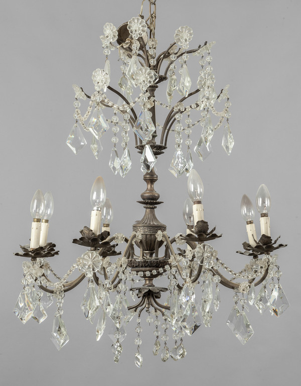 Lampadario in stile antico in metallo e cristalli a otto luci