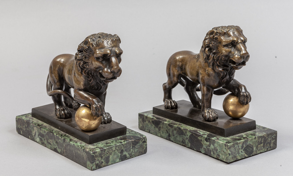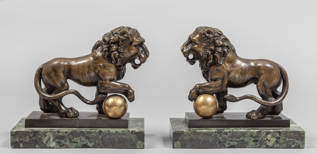 Coppia di leoni in bronzo dorato e patinato Italia sec.XIX
