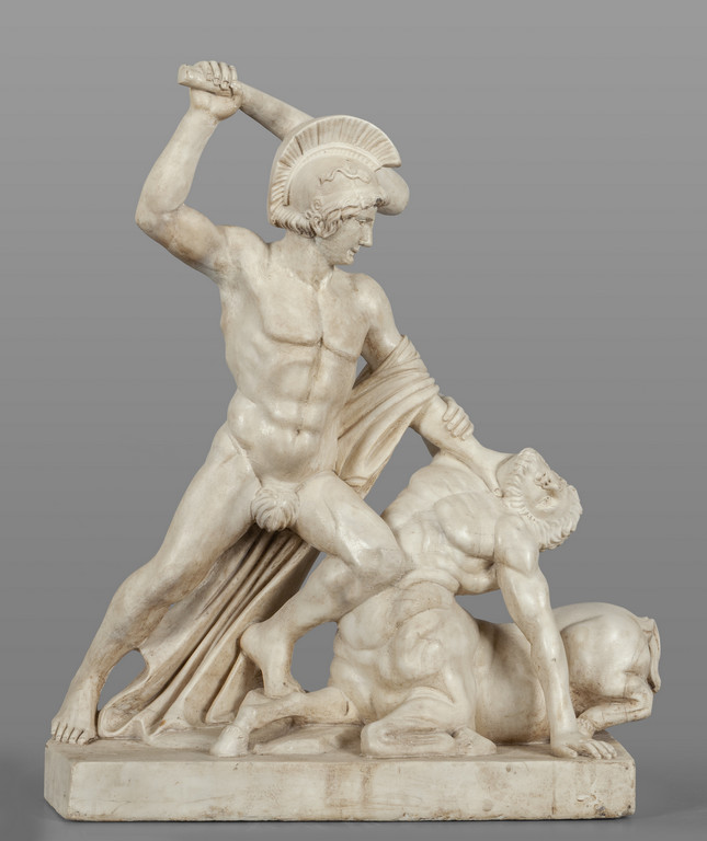 Grande gruppo in marmo raffigurante l'uccisione di un centauro sec.XIX