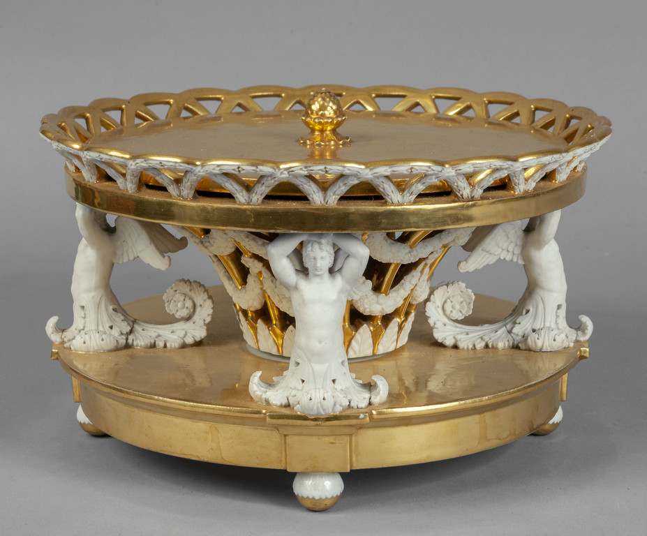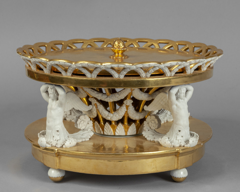 Alzata in porcellana dorata a motivi neoclassici Francia sec.XIX