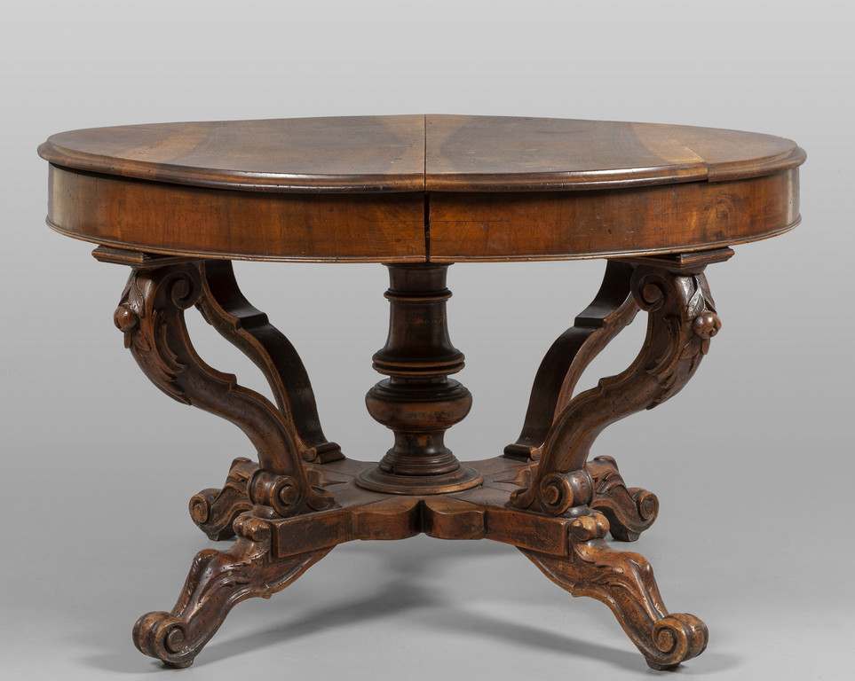 Precedente Lotto 1317 Successivo Aste Boetto - Via Mura dello Zerbino 10R, 16122 Genova Asta di Antiquariato Asta di Antiquariato giovedì 16 dicembre 2021 ore 10:30 (UTC +01:00) MOBILE Tavolo a cestello in noce allungabile Genova sec. XIXdiam. cm. 124x h. 76