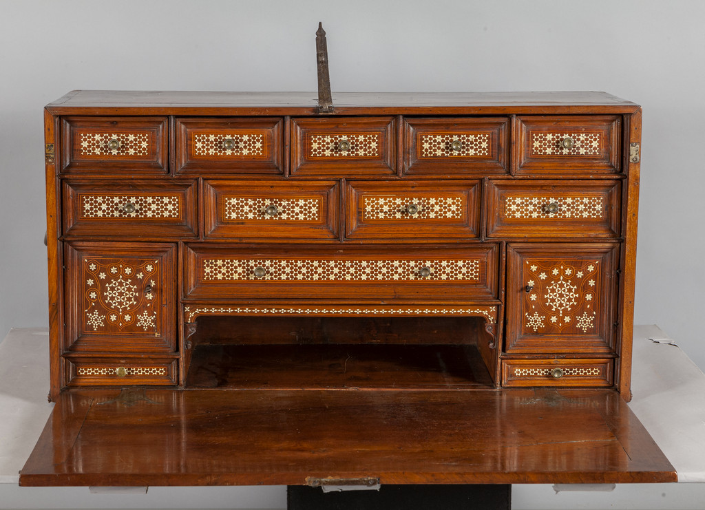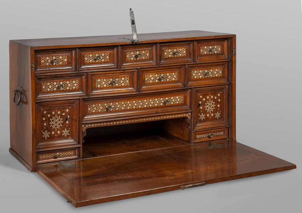 Barguegno in noce all'interno cassetti intarsiati in osso Spagna sec.XVII