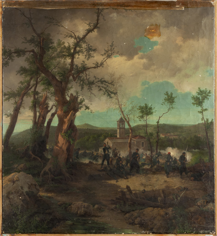 'Combattimento a San Fermo' olio f.to e d.to nel telaio 1859