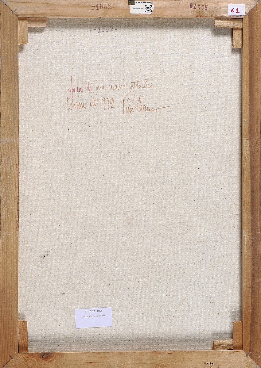 CARUSO PINO (1922 - 1993) Paesaggio con palme. 1972. Olio su tela . Cm 50,00 x 70,00 x 1,50. Firma in basso a destra. Al retro firma per autentica e data.