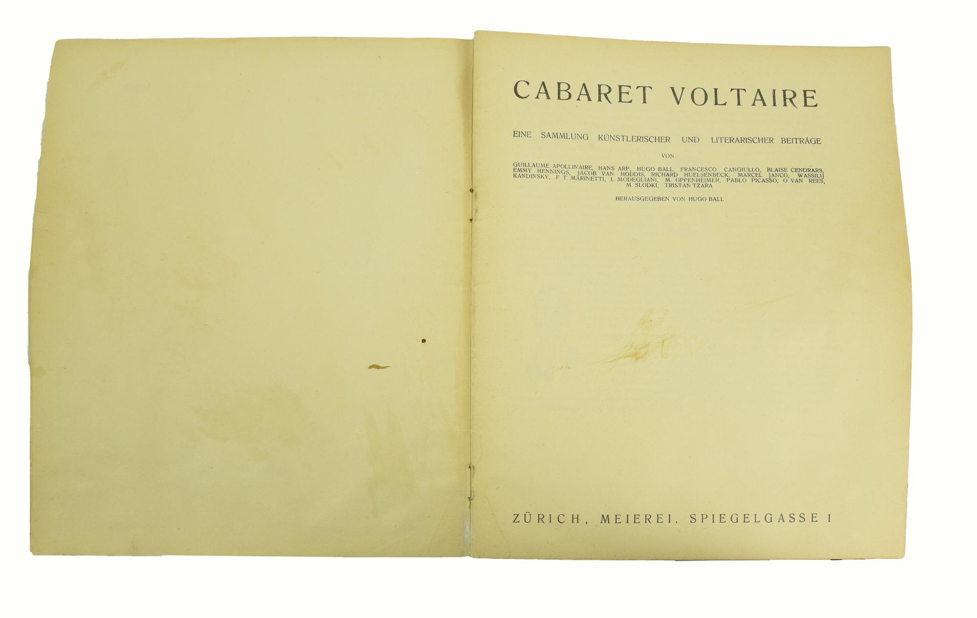 Con la fondazione del Cabaret Voltaire a Zurigo, il 5 febbraio 1916, nasce a tutti gli effetti il movimento Dada. Promotori sono il poeta e letterato tedesco Hugo Ball, il poeta e saggista rumeno Tristan Tzara, il pittore e scenografo Marcel Janco, nonché il pittore e scultore Hans Arp. Il nome del cabaret allude all'esaltazione della ragione contro l'irrazionalità della guerra.