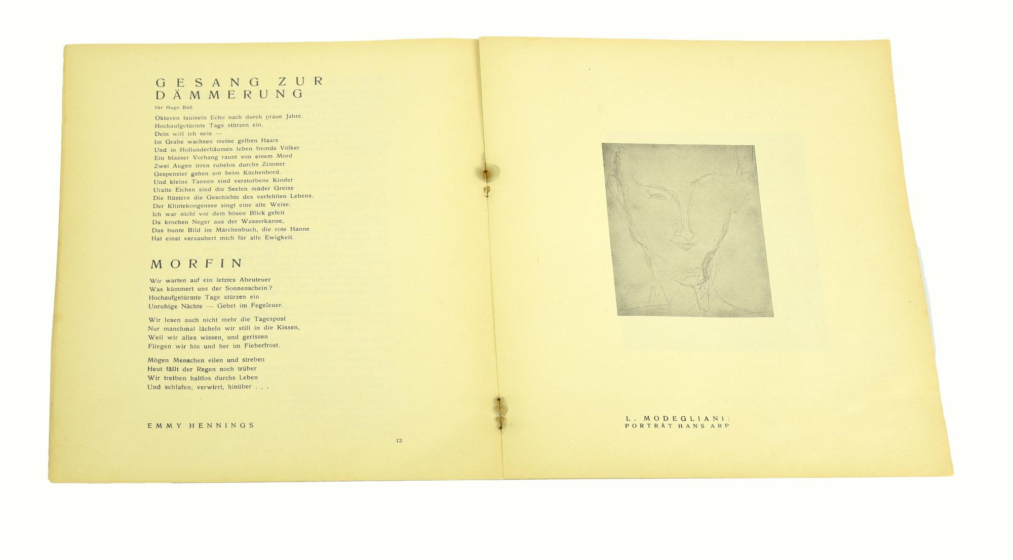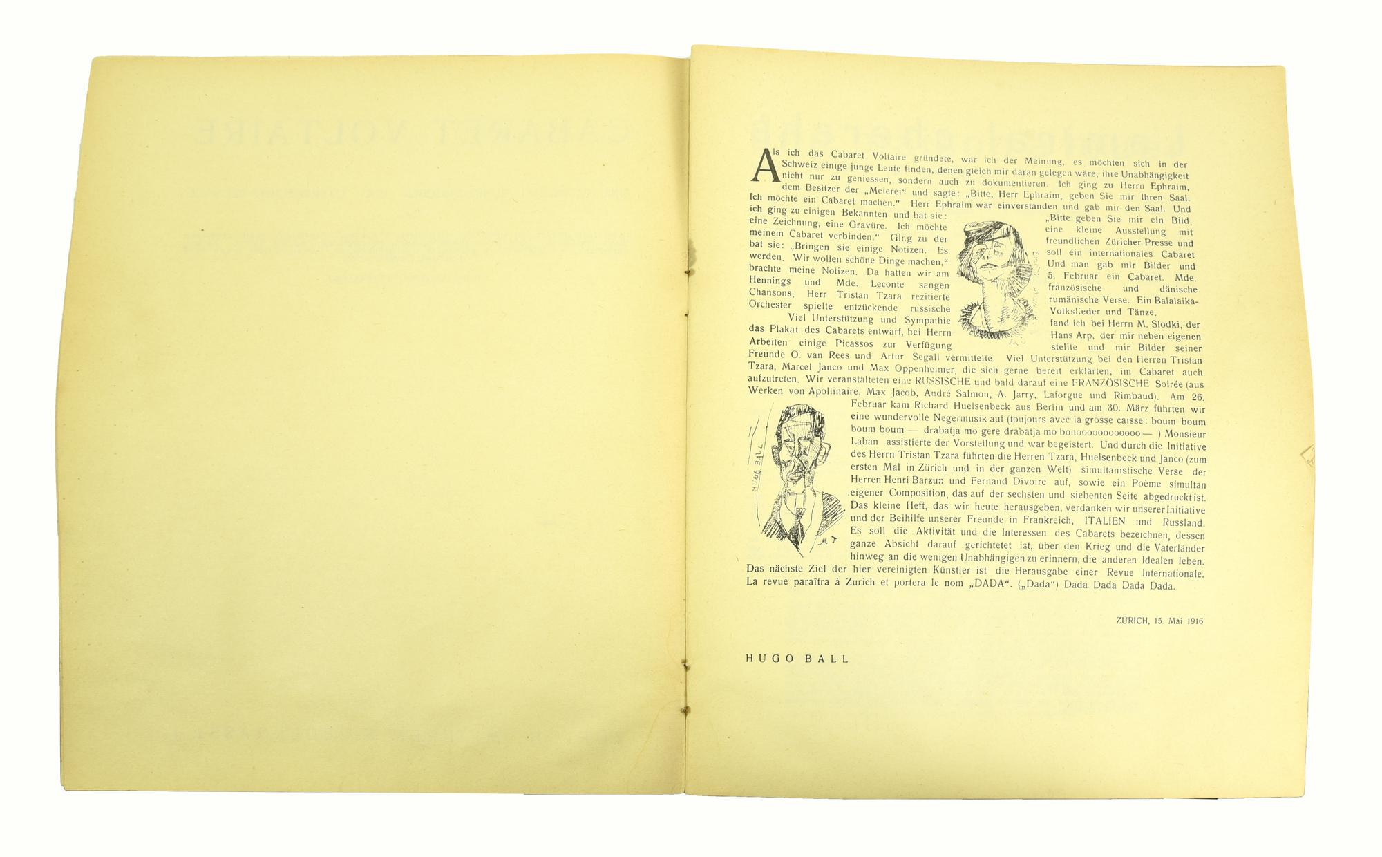 Primo numero. Edito da Hugo Ball, Zurigo. Lievi difetti.