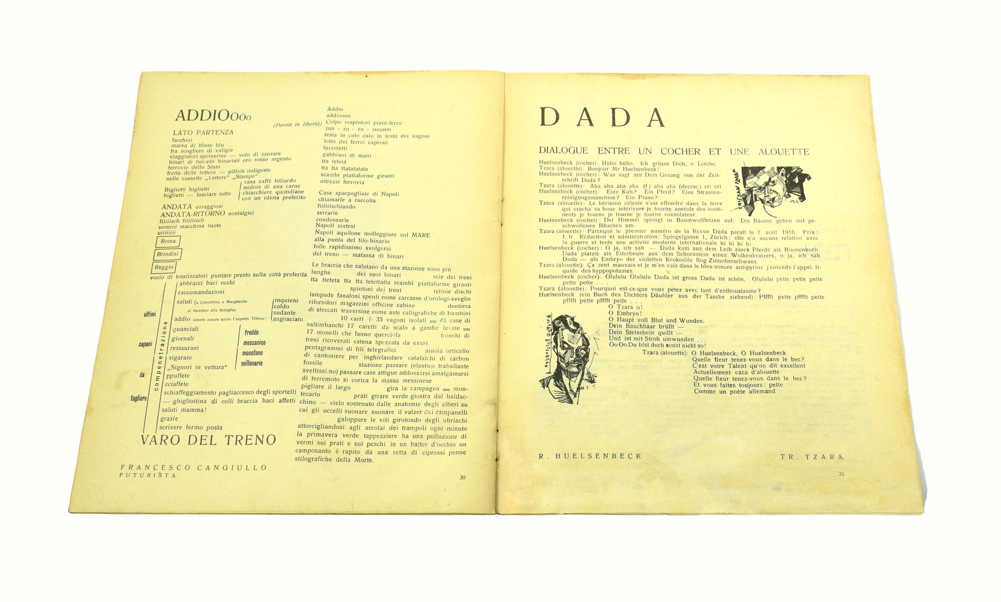 E' in questa raccolta che compare per la prima volta la parola DADA, durante il manifesto che fu redatto a Zurigo al celebre cabaret "Cabaret Voltaire".