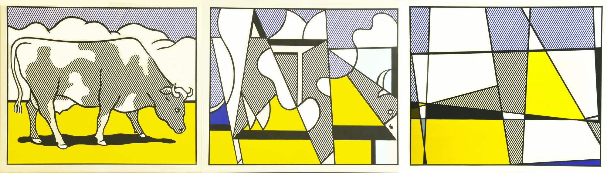 Nel 1982, in occasione della tappa fiorentina dell'esibizione monografica Roy Lichtenstein 1970-1980, fu l'artista stesso a volere che la sua opera pittorica Cow Triptych (Cow Going Abstract) del 1974, fosse riprodotta in una serie grafica. La serigrafia, edita dai fratelli Alinari, venne stampata in un numero di circa 450 esemplari, di cui solo 150 furono rifilate del testo sulla destra e vennero numerate e firmate a matita da Roy Lichtenstein.