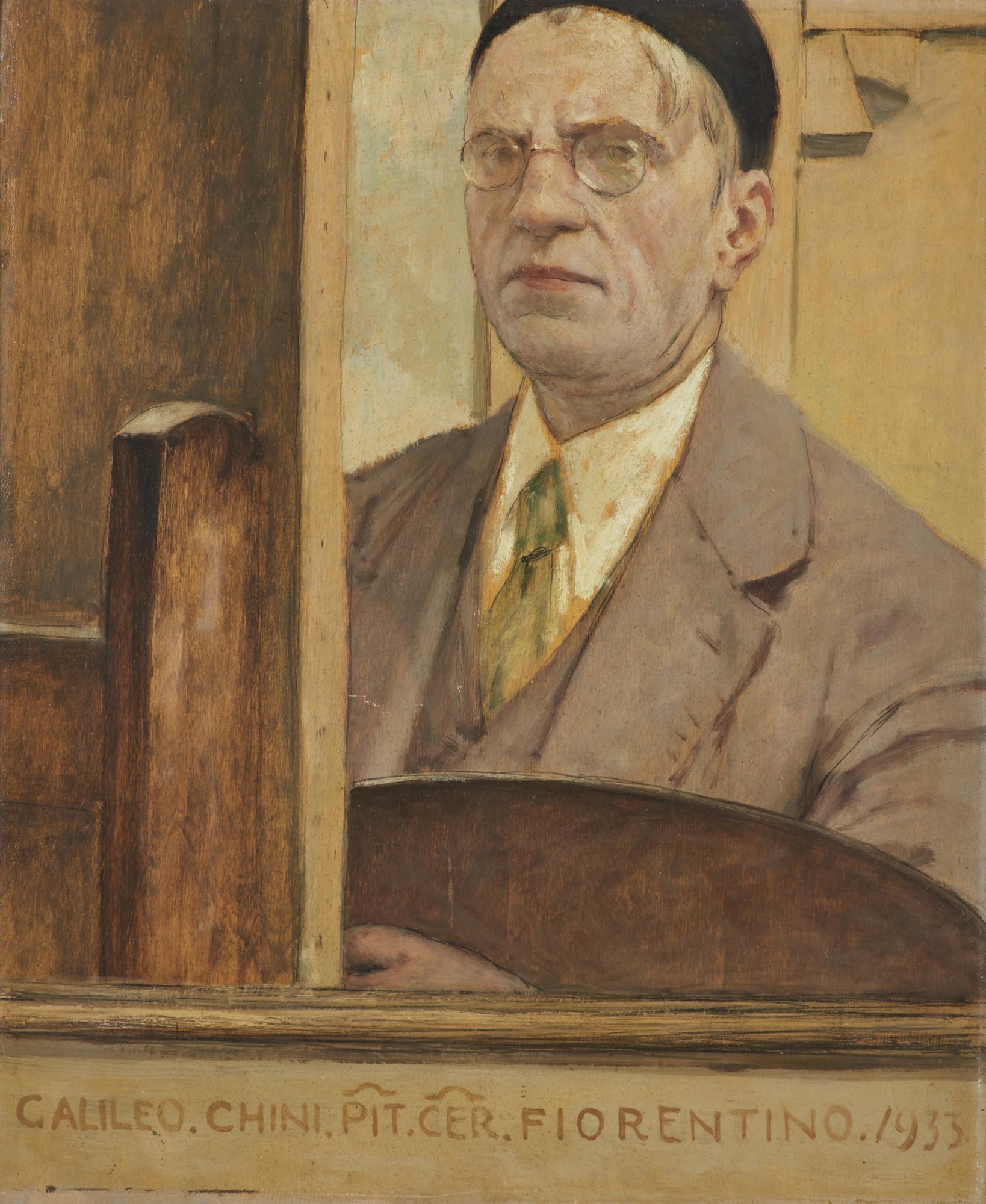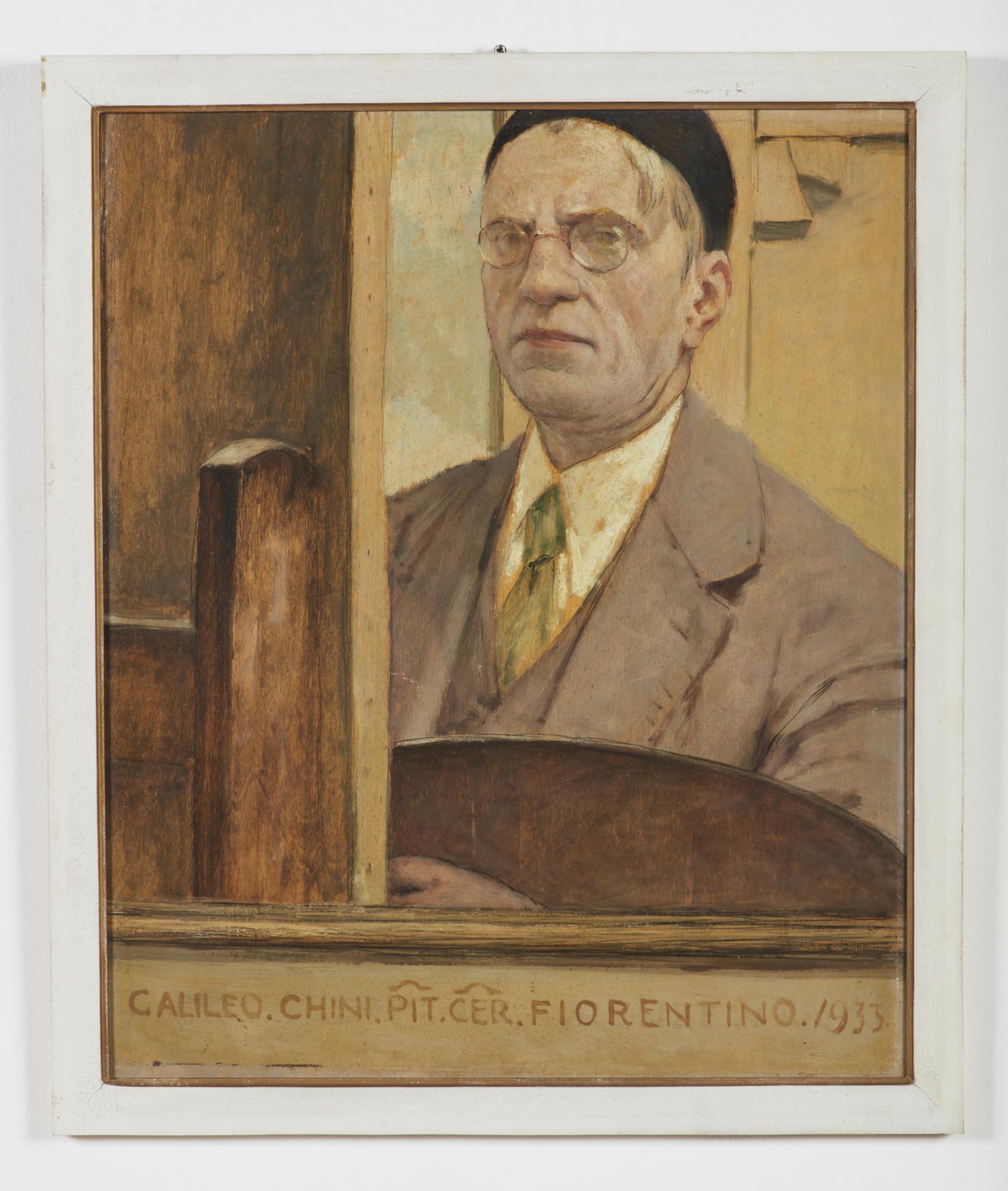 Firma e anno in basso. Dichiarazione di autenticita' a cura del Prof. Berni. Sitografia: http://www.repertoriogalileochini.it/opera-galileo-chini.asp?id=1113&titolo=Autoritratto%201933 . Lievi difetti.