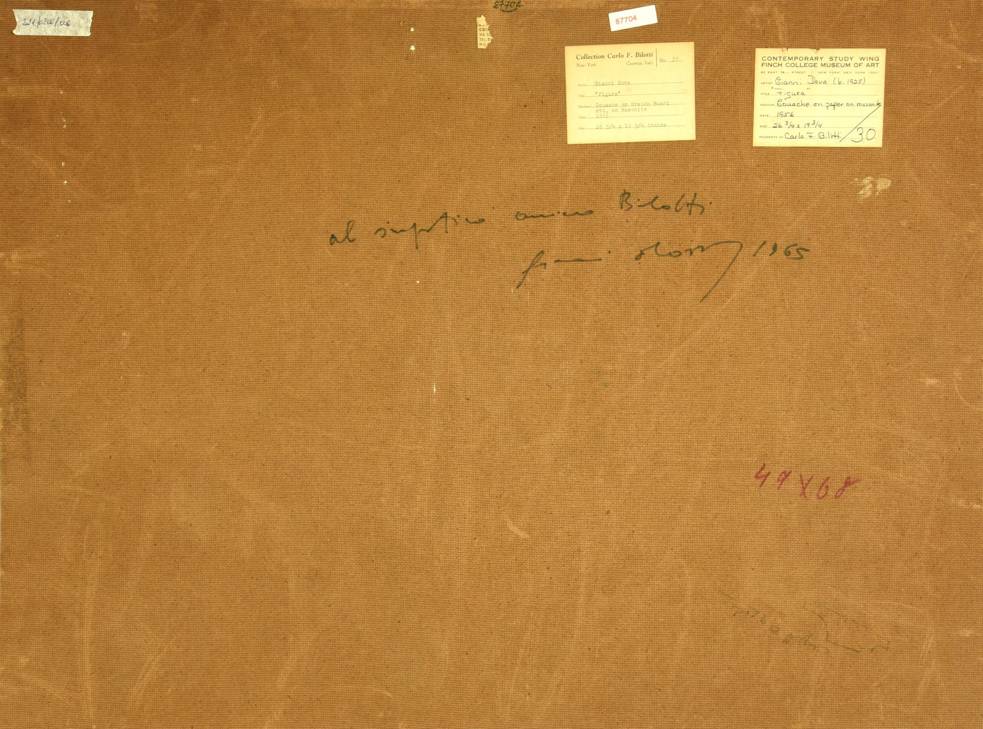 Gianni Dova (1925 - 1991) FIGURA gouache su carta applicata su faesite, cm...