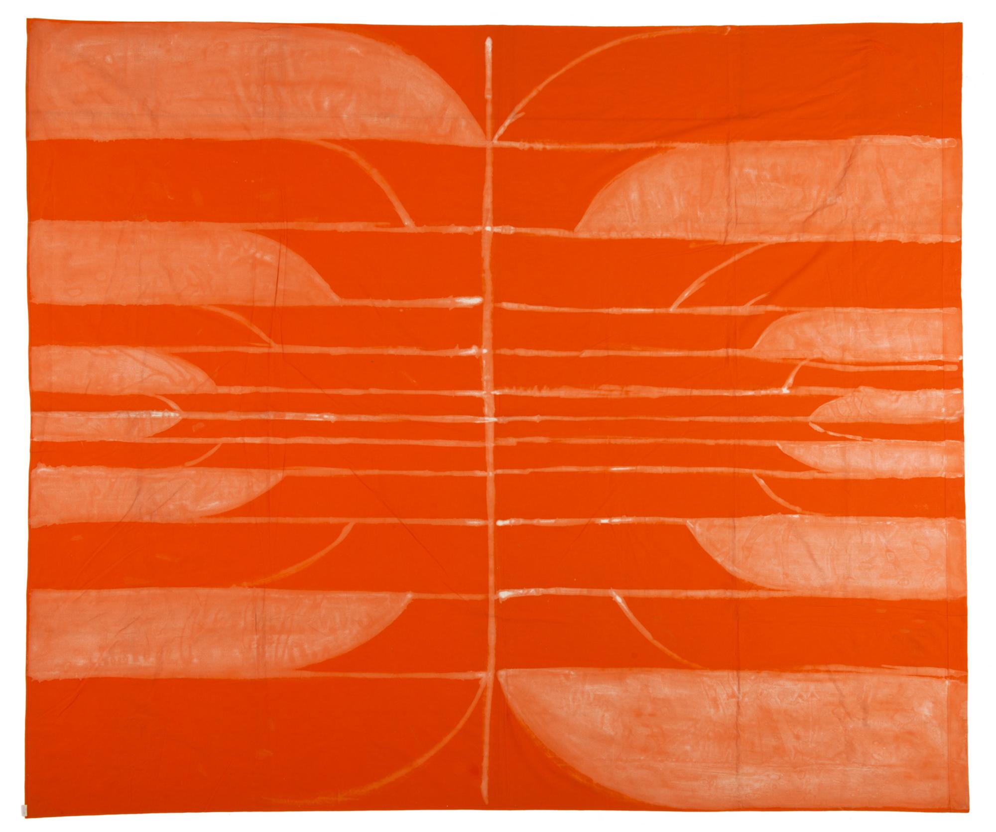 Carla Accardi (1924 - 2014) LENZUOLO ROSSO BIANCO pittura su stoffa, cm...