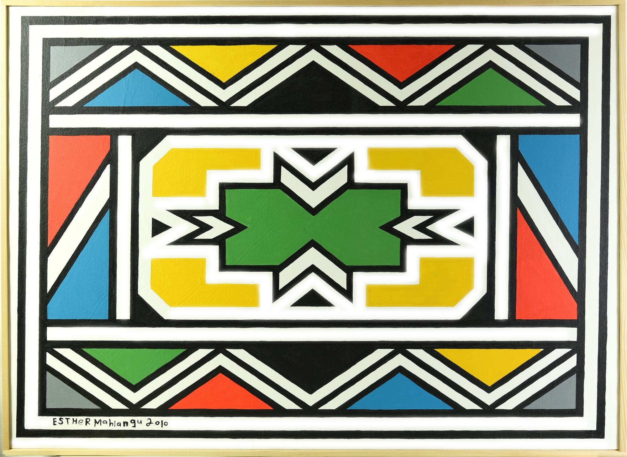 Esther Mahlangu (1935) SENZA TITOLO acrilico su tela, cm 84x114 2010 Firma e...