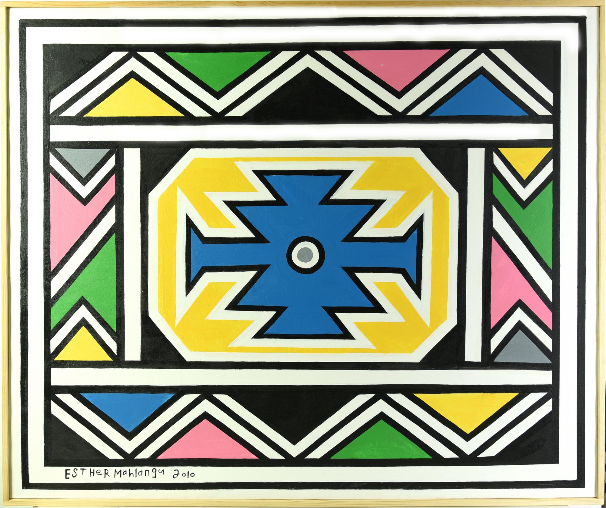 Esther Mahlangu (1935) SENZA TITOLO acrilico su tela, cm 92x112 2010 Firma e...