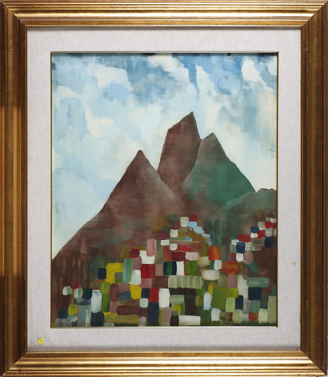 ANONIMO Paesaggio con montagne. 1972. Olio su tavola. Cm 80,00 x 100,00. Firma e data in basso a destra. Cornice presente