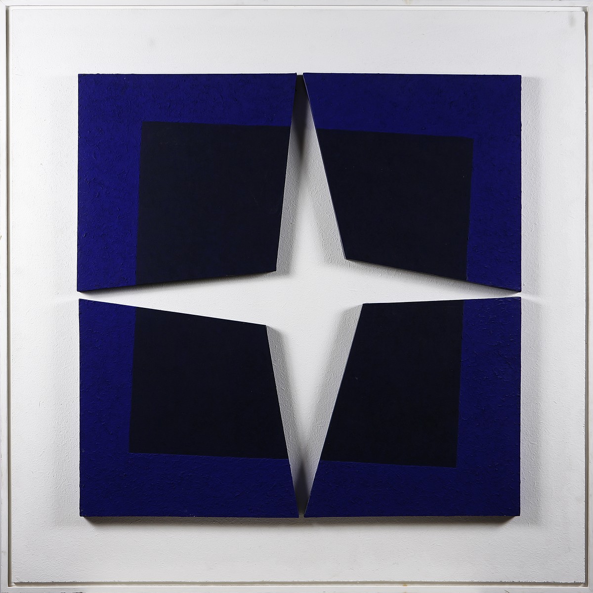 ANASTASIO GIANFRANCO (n. 1956) Stella. Acrilico su tela applicata su tavola. Cm 100,00 x 100,00. Al retro cartiglio della Galleria Ferrari, Verona. Opera esposta durante la personale tenutasi presso la Galleria Ferrari, Verona, nel 1991 e pubblicata nel volume La pittura in Italia: Il Novecento/2, Electa, pag.565. Cornice presente