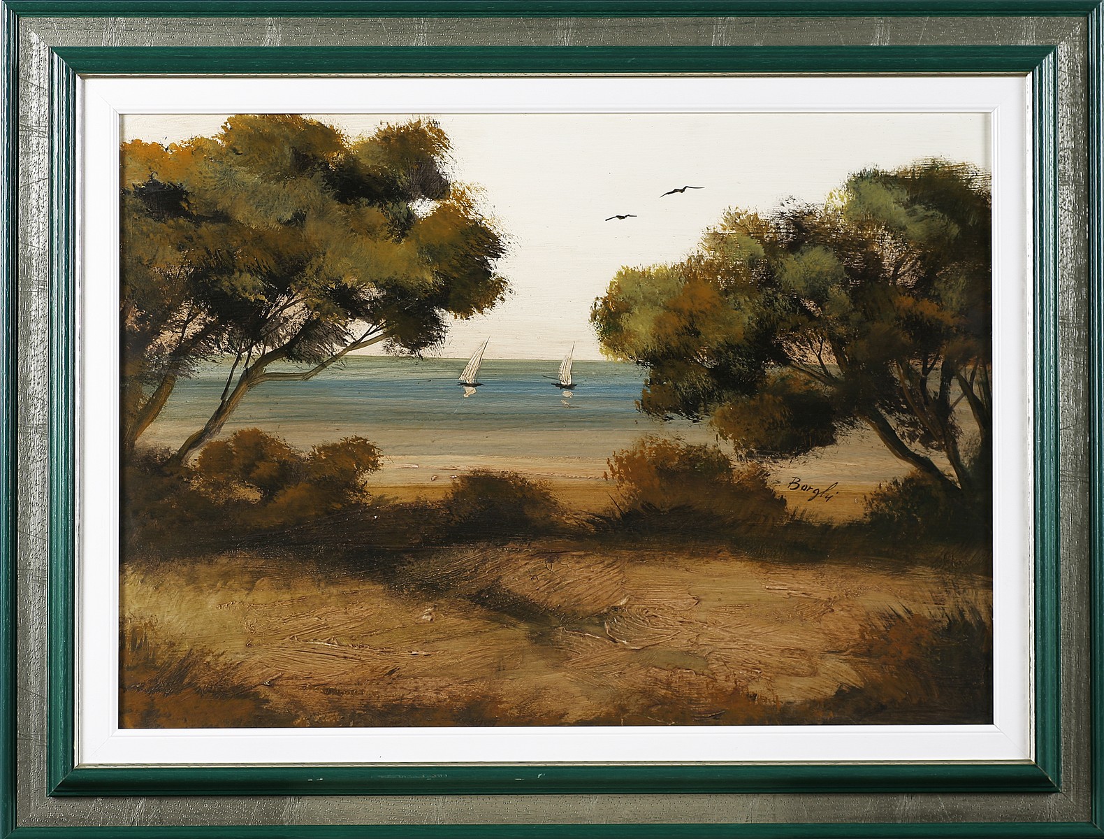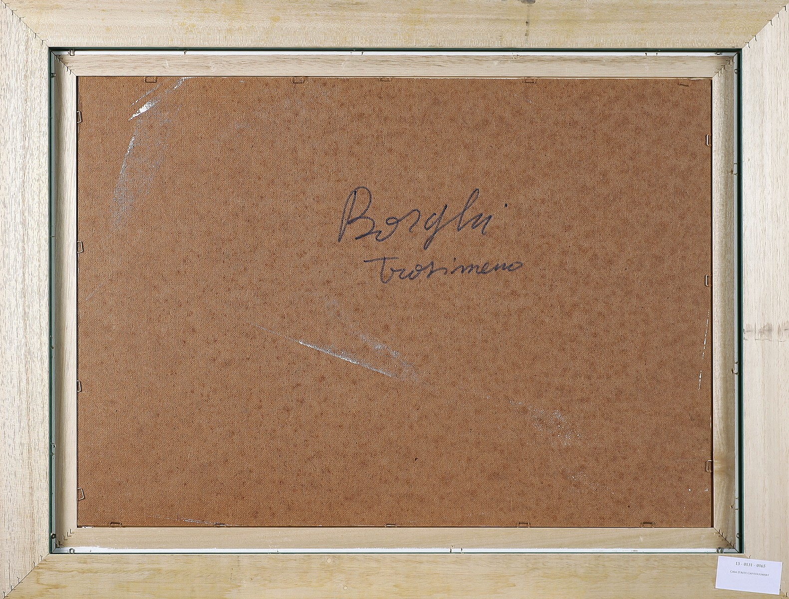 BORGHI Trasimeno. Olio su faesite. Cm 70,00 x 50,00. Firma nel mezzo. Al retro firma e titolo. Cornice presente