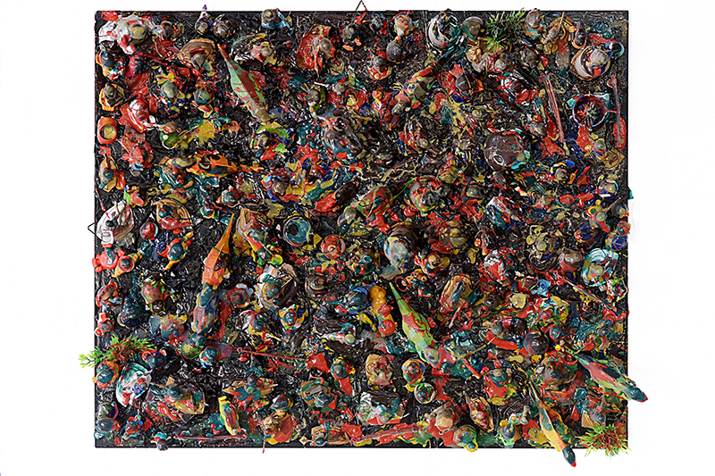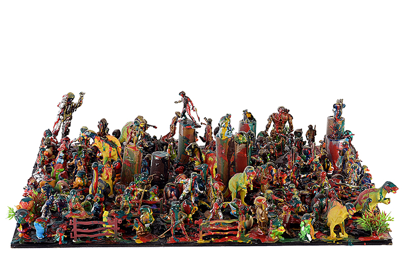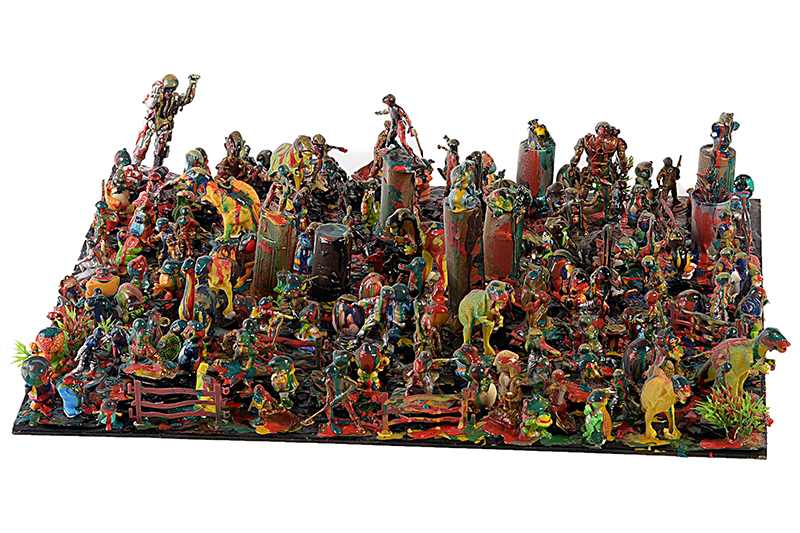 Scultura realizzata con sorpresine Kinder e soldatini di plastica