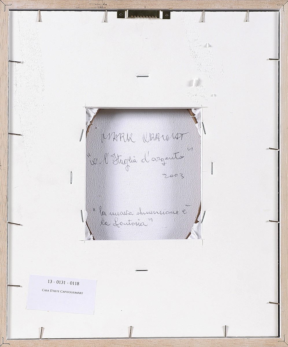 WRIGHT MARK (n. 1962) W l'Italia d'argento. 2003. Tecnica mista su tela. Cm 18,00 x 23,00. Al retro firma, titolo e data. Autentica dell'artista su fotografia. Cornice presente