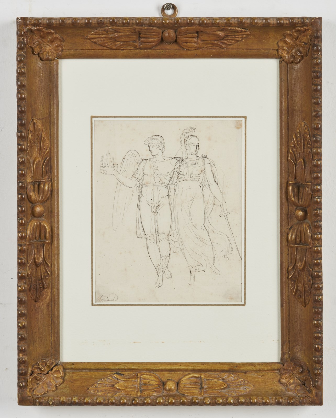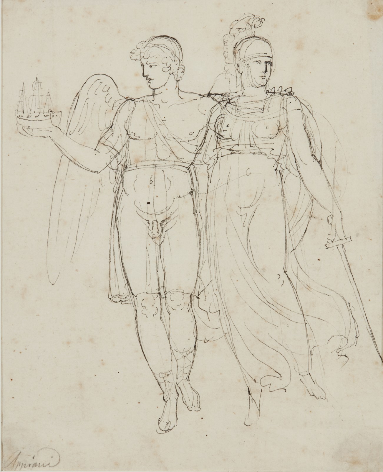 ARTISTA NEOCLASSICO Eolo e Atena. Penna e inchiostro su carta. Cm 13,90 x 17,10. Firmato (Appiani) in basso a sinistra. Cornice presente