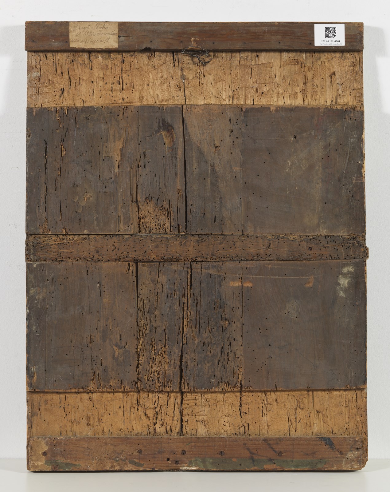ARTISTA TOSCANO DEL XVI SECOLO Tobiolo e l'angelo. Olio su tavola. Cm 60,00 x 79,00. Al retro riporta cartiglio descrittivo. L'opera è accompagnata dalla scheda a cura del " Centro Ricerche sul dipinto Palladio".