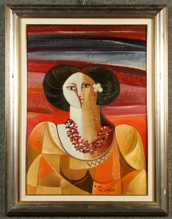 Firmato, datato. DI CARLO VITTORIO MARIA - Nato a San Marco in Lamis (Foggia) nel 1939. Tra le molte, ha partecipato all'esposizione internazionale di Bamberg in occasione della quinta Biennale Europea. Dipinto olio su tela raffigurante ritratto intitolato ''TRAMONTO A MANILA''. Firmato in basso a destra. In cornice. Mis. Lung. cm. 50 Alt. cm. 70 ca.