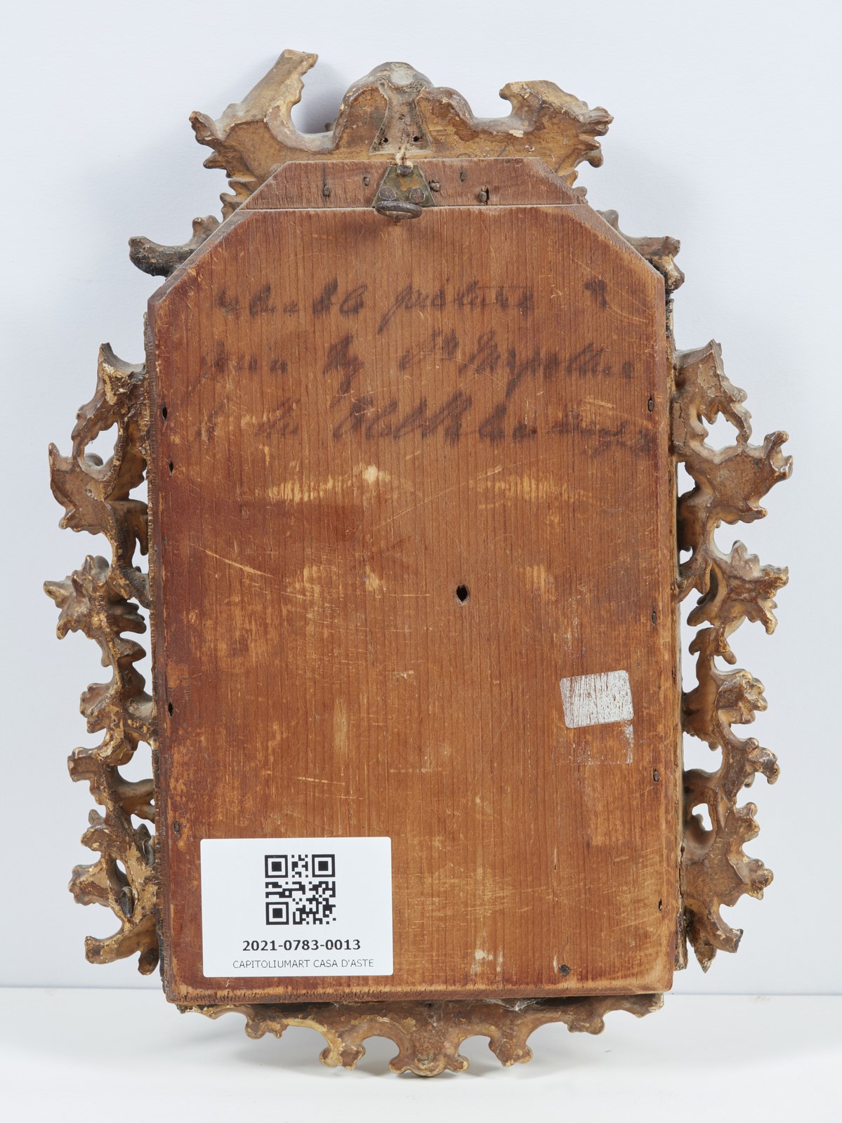 ARTISTA DEL XVII SECOLO Crocifissione. Olio su rame. Cm 12,30 x 17,00. In cornice dorata del XIX secolo. . Cornice presente