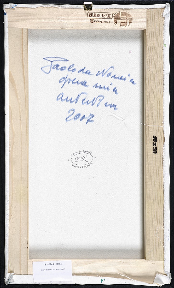 DA NORCIA PAOLO (n. 1953) Senza titolo. 2007. Olio su tela . Cm 30,00 x 50,00. Firma in basso a destra. Al retro timbro Paolo Da Norcia, firma per autentica e data. Autentica dell'artista su fotografia. Cornice presente
