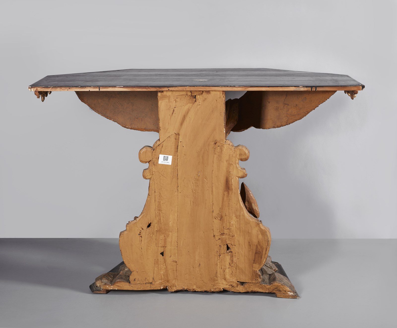 Questo tavolo da parete romano nasce probabilmente come base di sostegno per una vetrina, come suggerito dal piano sagomato e dall'analogia compositiva con un altro illustre esemplare della medesima tipologia, la cosiddetta Scarabattola Ottoboni, oggi conservata al Metropolitan Museum of Art di New York (inv. 1972.73): in questo superbo arredo principesco romano realizzato a cavallo tra il XVII e il XVIII secolo, una figura virile appoggiata su una base rocciosa e ammantata sostiene, tra ghirlande di fiori che ne reggono gli spigoli posteriori, il piano sagomato, come nella presente versione fa la sirena alata e bicaudata. Di dimensioni più ridotte e di fattura meno elaborata rispetto all'esemplare Ottoboni, questo tavolo da parete si inserisce nel novero degli arredi scultorei dell'ultimo periodo del Barocco romano.