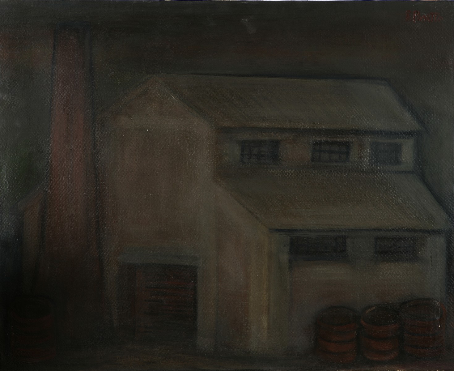 PASETTO REMO (n. 1925) Fabbrica. 1970. Olio su tela . Cm 65,00 x 80,00. Firma in alto a sinistra. Al retro firma e data.
