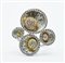 in oro bianco 18kt, modellato a cerchi decorati con diamanti e, al centro di ognuno, da semisfere in oro giallo 18kt, impreziosite da pave' di diamanti per complessivi 1,09 ct circa.