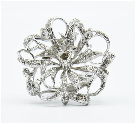 ANELLO A FORMA DI FIORE CON DIAMANTI in oro bianco 18kt modellato a fiore con...