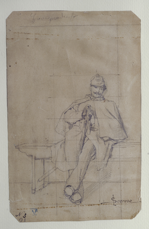 Lotto 366 | Luigi Serena (Treviso, 1855 - 1911) STUDIO PER UFFICIALE Matita su carta, cm....