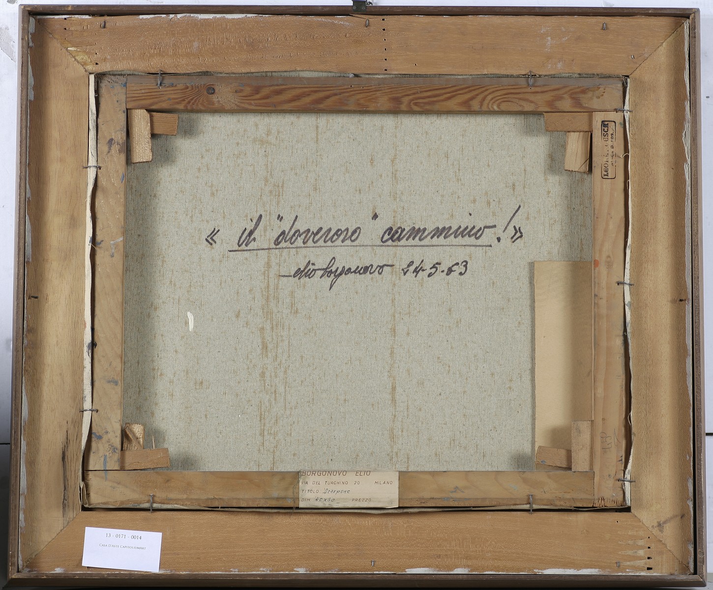 Lotto 722 | BORGONOVO ELIO Il doveroso cammino. 1963. Olio su tela . Cm 50,00 x 40,00. Al...
