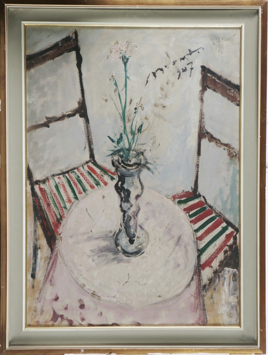 MONTI CESARINO (1916 - 1979) Fiori. Olio su tela applicata su tavola. Cm 70,00 x 50,00. Firma in alto. Cornice presente