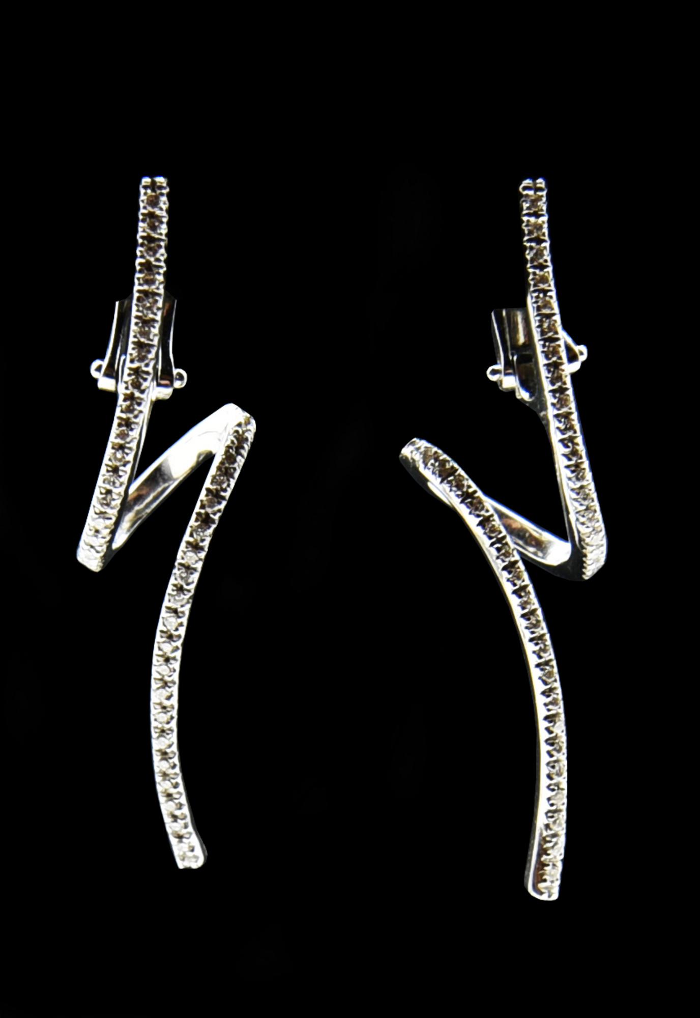 in oro bianco 18kt modellati a spirale aperta e impreziositi da fila di diamanti naturali, VSG, per complessivi 0,40 cr circa. Chiusura a perno con clip.