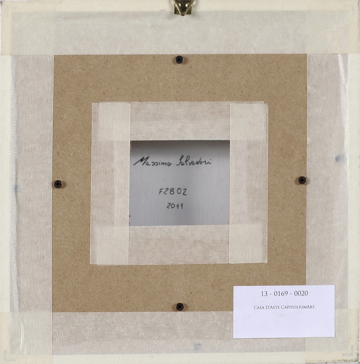 SALVADORI MASSIMO (n. 1960) F2B02. 2011. Acrilici su tela . Cm 20,00 x 20,00. Al retro firma, titolo e data. Autentica dell'artista su fotografia. Cornice presente
