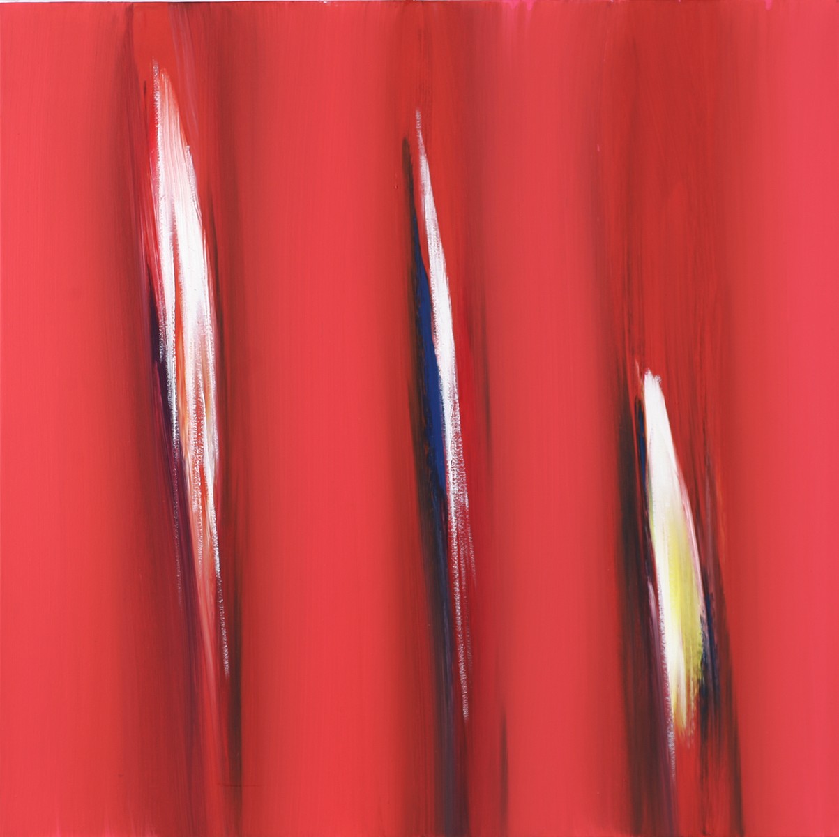 FINZI ENNIO (n. 1931) Il verso del colore in rosso. 2009. Olio su tela . Cm 50,00 x 50,00. Al retro firma, titolo e data. Autentica dell'artista su fotografia.