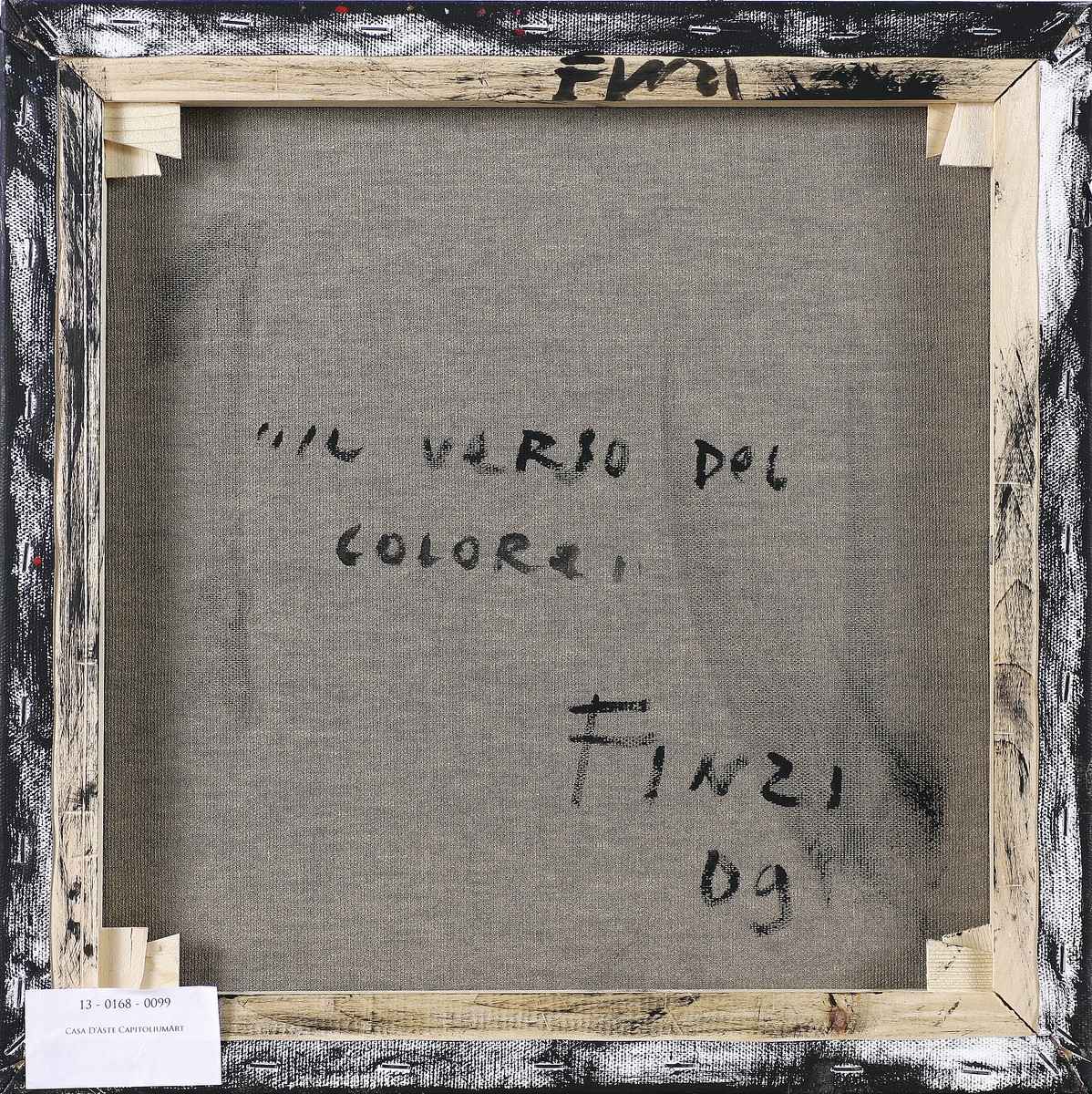 FINZI ENNIO (n. 1931) Il verso del colore. 2009. Olio su tela . Cm 40,00 x 40,00. Al retro titolo, firma e data. Autentica dell'artista su fotografia.