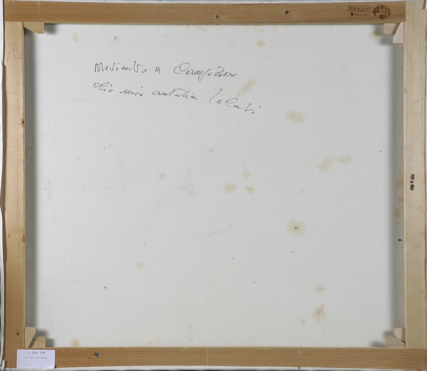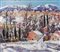 IALENTI ANTONIO (n. 1937) Nevicata a Campobasso. Olio su tela . Cm 80,00 x 70,00. Firma in basso a destra. Al retro titolo e firma per autentica. Autenica dell'artista su fotografia.