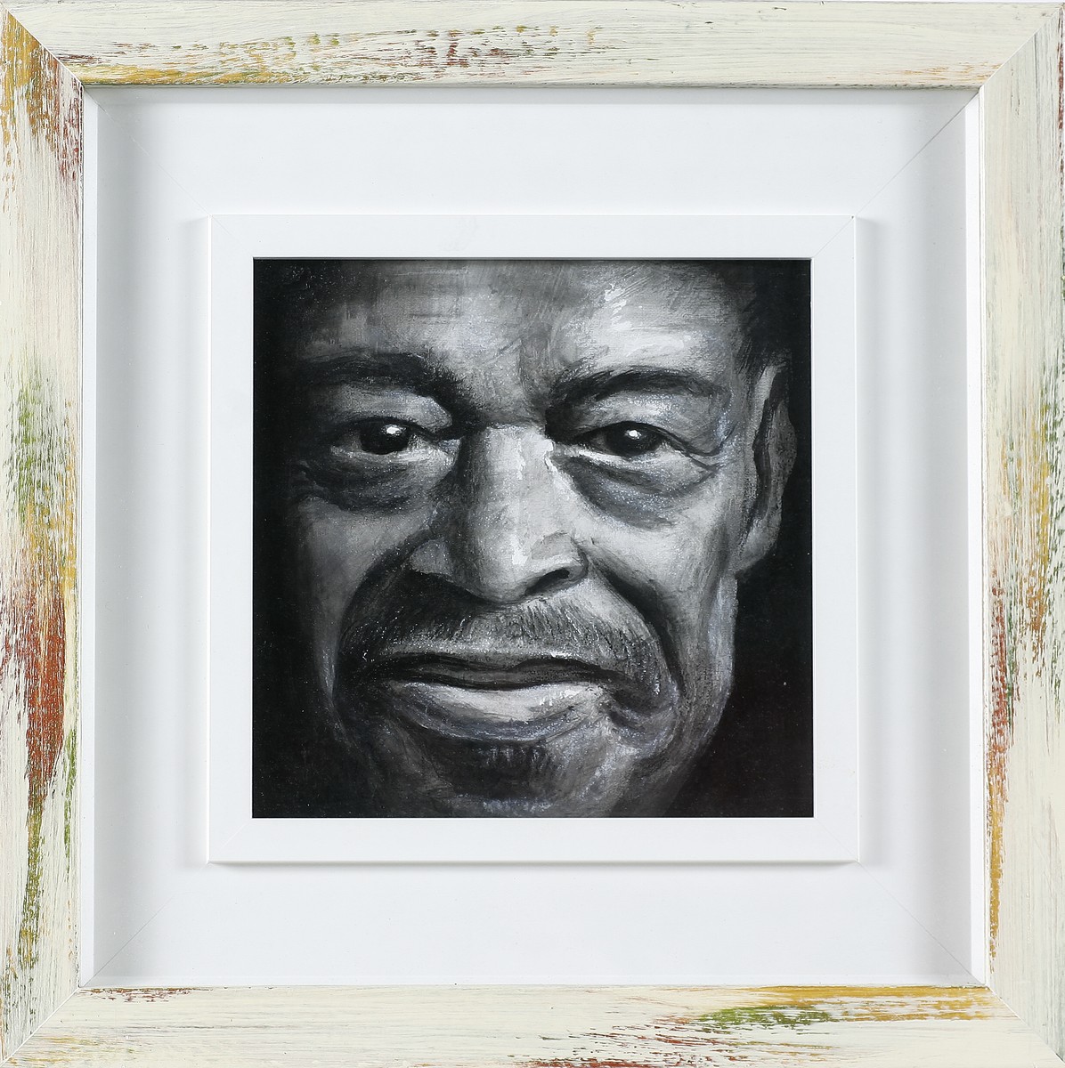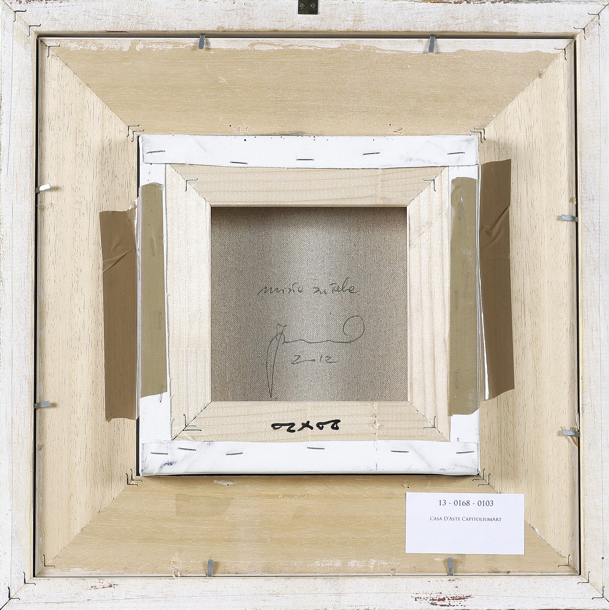 FRISONI DAVIDE (n. 1965) Volto. 2012. Tecnica mista su tela. Cm 20,00 x 20,00. Al retro firma e data. Autentica dell'artista su fotografia. Cornice presente
