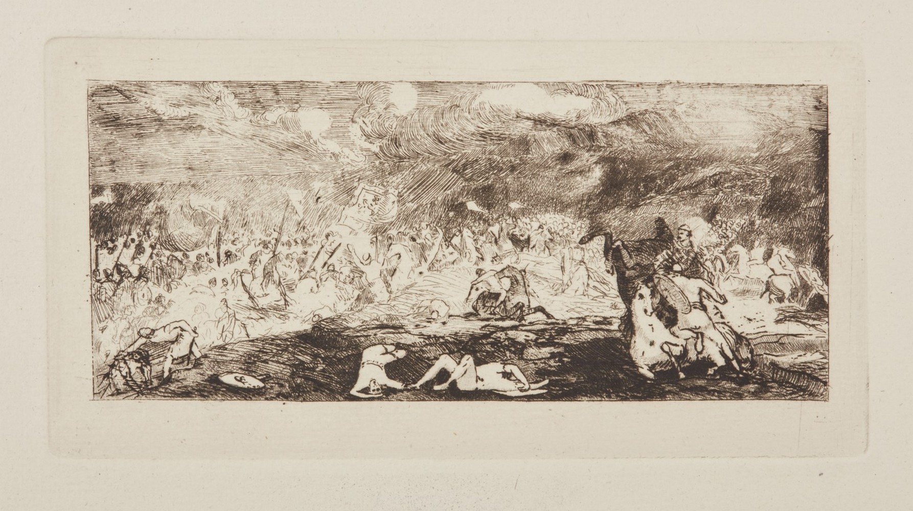 REDON ODILON (1840 - 1916) La Bataille. Acquaforte. Cm 15,00 x 7,50.