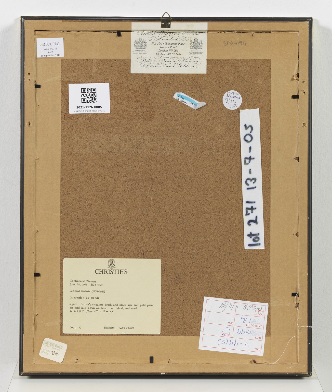 SARLUIS LÉONARD (1874 - 1949) La creazione del mondo. Tecnica mista su carta. Cm 18,00 x 26,50. Firmato in basso a sinistra.